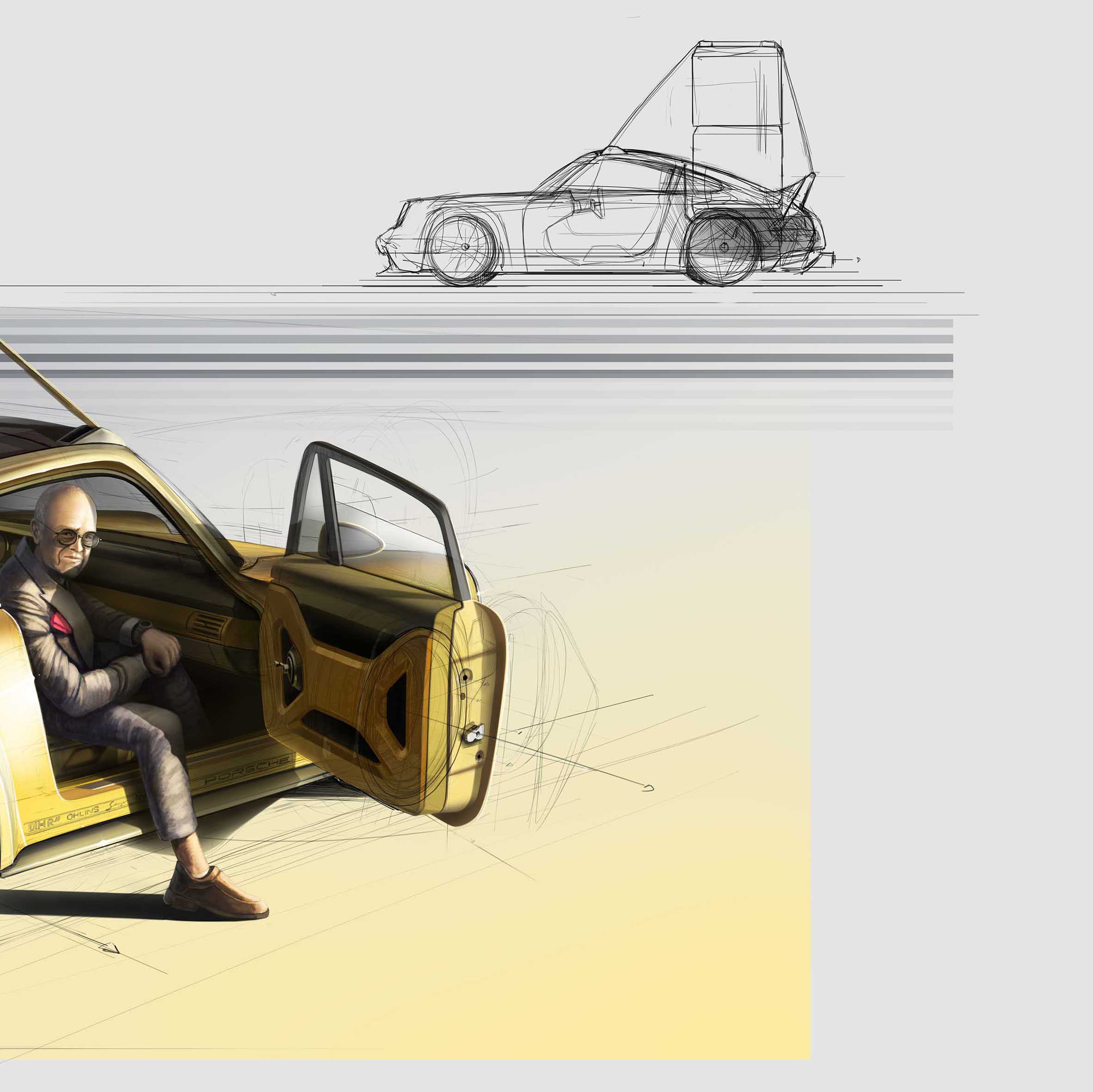 Year2021Size40''x 20''DescriptionThis is a concept art that illustrates a Porsche 911 by Singer Vehicle Design reinterpreted and transformed in a cargo version.TechniqueBall pen drawing on paper scanned and digitally rendered with classic hand made technique.CopyrightOriginal concept and drawing by Guido Bottazzo rights reserved.