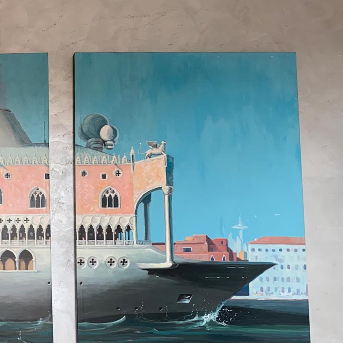 The Vernissage will be at the internal art space of Hotel Aquarius, in the center of Venice.